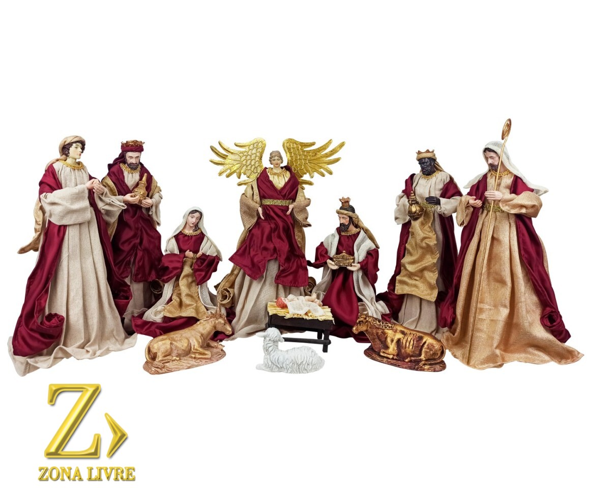2. PRESEPIO DE TECIDO VINHO/DOURADO 11PÇS 30CM