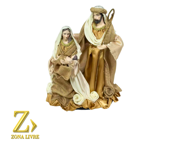 Transforme sua decoração natalina com a Sagrada Família Branco/Dourado 30cm, uma peça que transmite paz, beleza e significado. Ideal para quem valoriza o verdadeiro espírito do Natal.