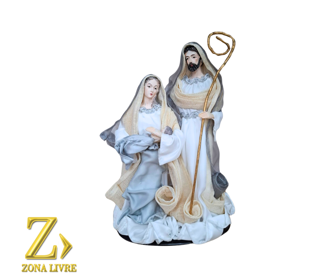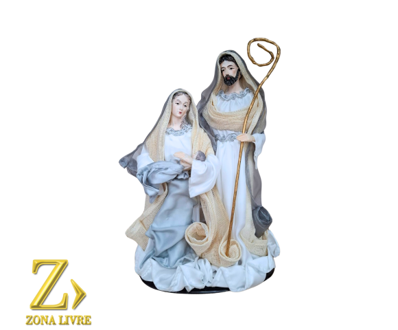 A Sagrada Família Tecido Prata/Branco 30cm é uma peça elegante e espiritual, perfeita para compor uma decoração natalina refinada e simbólica. Com 30 cm de altura, a imagem retrata José, Maria e o Menino Jesus com vestes em tecido branco com detalhes prateados, transmitindo paz, pureza e brilho discreto ao ambiente.